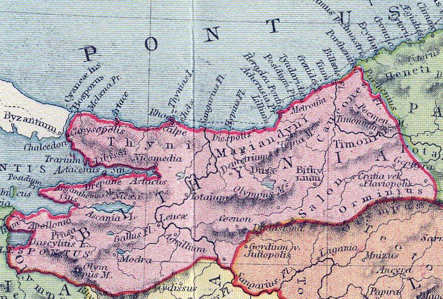 Bithynia (/bɪˈθɪniə/; Koine Greek: Βιθυνία, Bithynía) was an ancient region, kingdom and Roman province in the northwest of Asia Minor, adjoining the Sea of Marmara, the Bosporus, and the Black Sea. It bordered Mysia to the southwest, Paphlagonia to the northeast along the Pontic coast, and Phrygia to the southeast towards the interior of Asia Minor. Bithynia was an independent kingdom from the 4th century BC. Its capital Nicomedia was rebuilt on the site of ancient Astacus in 264 BC by Nicomedes I of Bithynia. Bithynia was bequeathed to the Roman Republic in 74 BC, and became united with the Pontus region as the province of Bithynia et Pontus. In the 7th century it was incorporated into the Byzantine Opsikion theme. It became a border region to the Seljuk Empire in the 13th century, and was eventually conquered by the Ottoman Turks between 1325 and 1333.